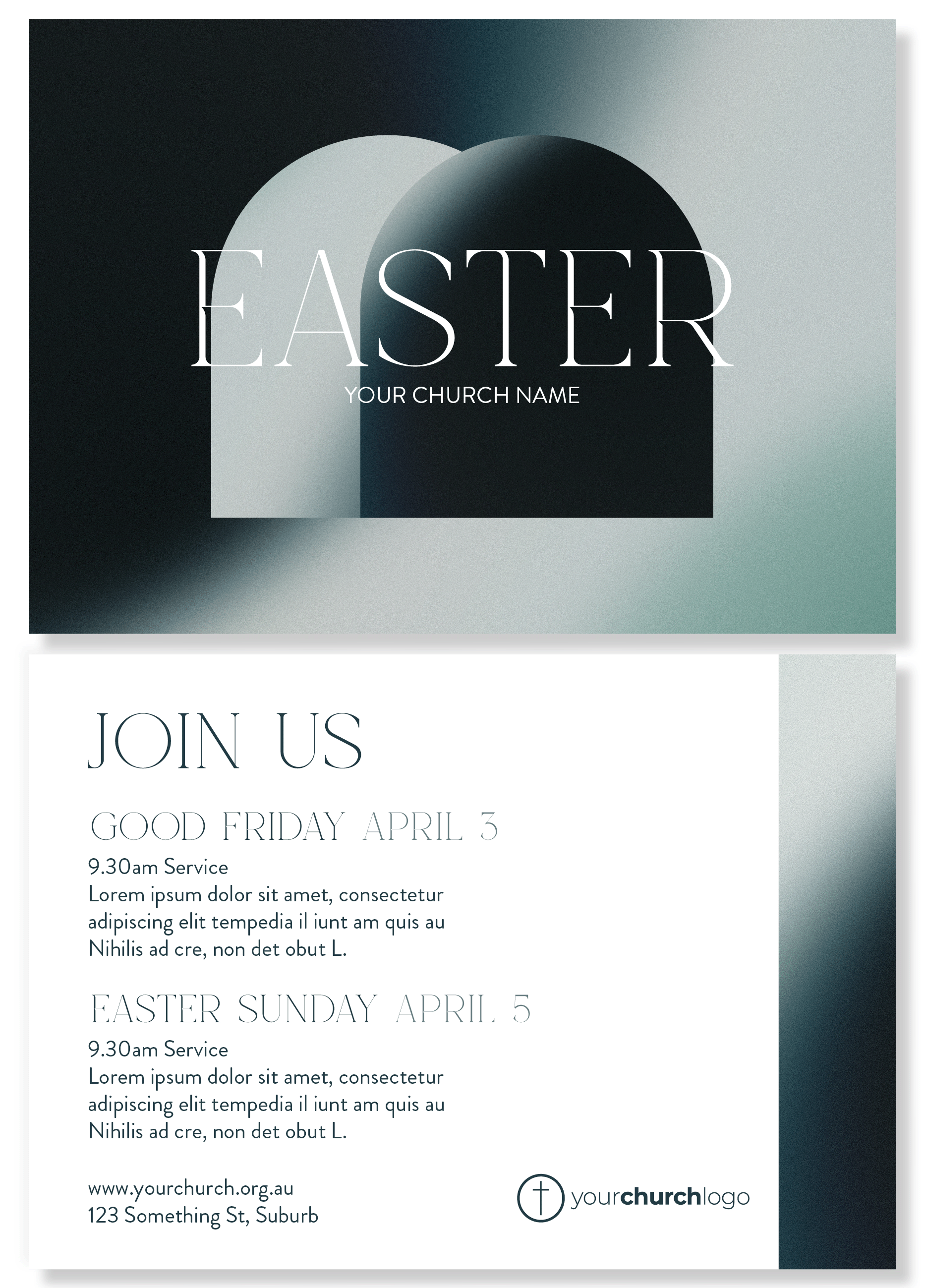 a print ready A6 card design file including your church logo and Christmas service/s details